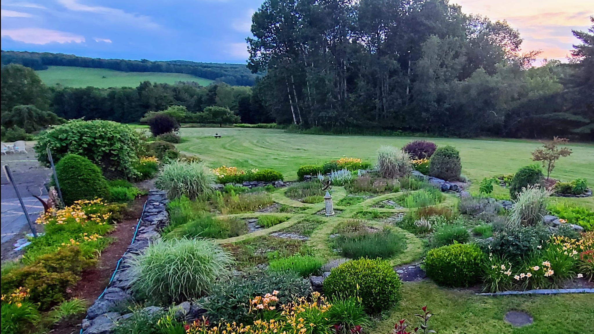The oaks and pines here are more than trees — they’ve been quiet witnesses to weddings, laughter, and late-night talks by the fire. Picnic tables catch golden afternoon light. Garden beds burst with color in summer, and the wind carries stories across the wide, open field. There’s space to gather and space to wander, all held together by the peace that settles over the land like a gentle blanket.