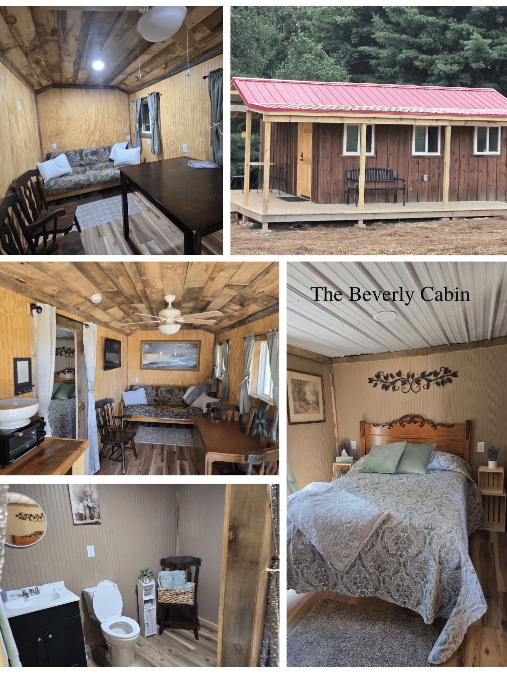 Whether you choose the spacious Carriage House with its cozy common areas, the charming Beverly Cabin tucked into the heart of the grounds, or the rustic Annabelle Cabin with its front-porch charm, you’ll find a place that feels both restful and connected to nature.